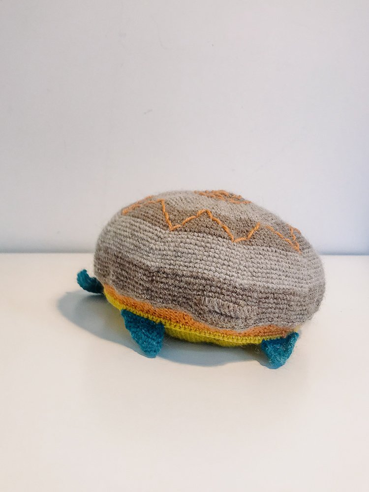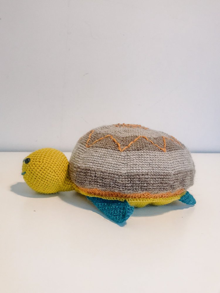 Freddy The Turtle Crocheted from Alpaca yarn & Merino Wool; 100% Polyester filling Cold Wash on Wool Cycle. Approximately 30cm wide Guide Price 35 EUR Date December 24, 2023 Share facebook pinterest